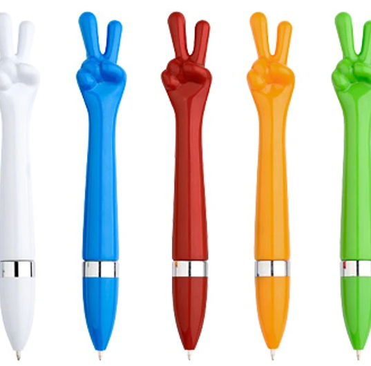 Bolígrafo plástico «Paz y Amor». Escritura Azul.